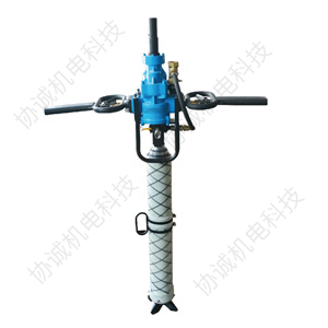工程上常見的分類是按鑿巖機的支撐方式來分類的1、氣腿式鑿巖機這類鑿巖機的重量較輕,一般在25kg以下,工作時用手扶著操作。氣腿式鑿巖機可以打各種小直徑和較淺的炮孔。一般只打向下的孔和近于水平的孔。氣腿式鑿巖機由于它靠人力操作,勞動強度大,沖擊能和扭矩較小,鑿巖速度慢,現在地下礦山很少用它。屬于此類的鑿巖機有Y3、Y26等型號。