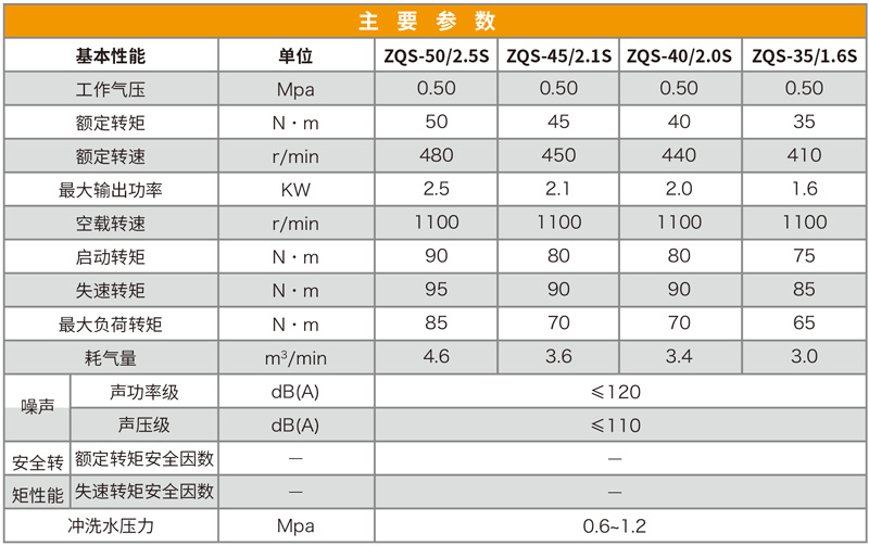 ZQS-50/2.5S. ZQS-45/2.1S. ZQS-40/2.0S. ZQS-35/1.6S型氣動手持式鉆機適用于巖石硬度60MPa(小于等于f6)的巷煤幫的錨桿支護作業,即可鉆錨桿孔,又可攪拌和安裝樹脂藥卷類錨桿。