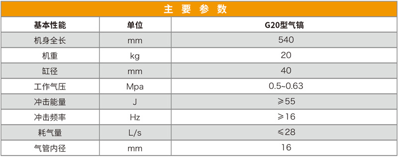 G20型氣鎬選材優(yōu)良,工序先進(jìn),整機(jī)具有重量輕、沖擊功率大,可防凍,操作靈活,維護(hù)保養(yǎng)方便等特點(diǎn)。