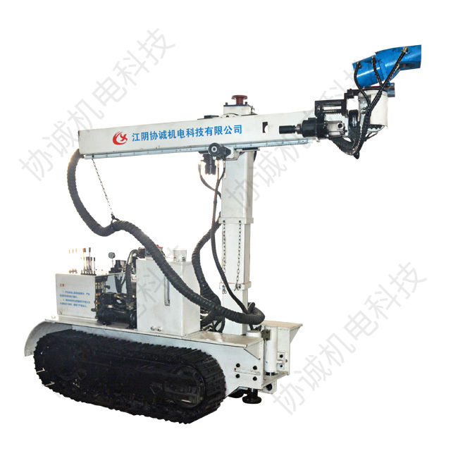 CRT-900/45/70型煤礦用退錨車采用液壓履帶式行走機構,井下乳化液泵站為動力源,主要用于綜采工作面頂幫進行的退錨作業。
